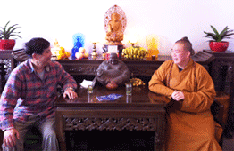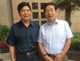 中國抗癌協(xié)會(huì)常務(wù)理事、河南省抗癌協(xié)會(huì)會(huì)長楊文獻(xiàn)教授和《百花散》傳人梅先生合影